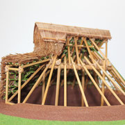 建物の躯体構造が分かり易いように作られた模型です。木目の向きや柱と梁の関係もよく分かります。