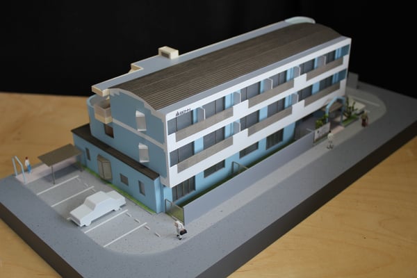 創業40年のリフォームサービスを手掛けられている会社社長様からのご依頼で、以前から自社ビルや不動産の建築模型を社長室に展示されていたのですが、お付き合いのある模型屋さんと連絡が取れなくなってしまい、作れる人を探していたということでした。