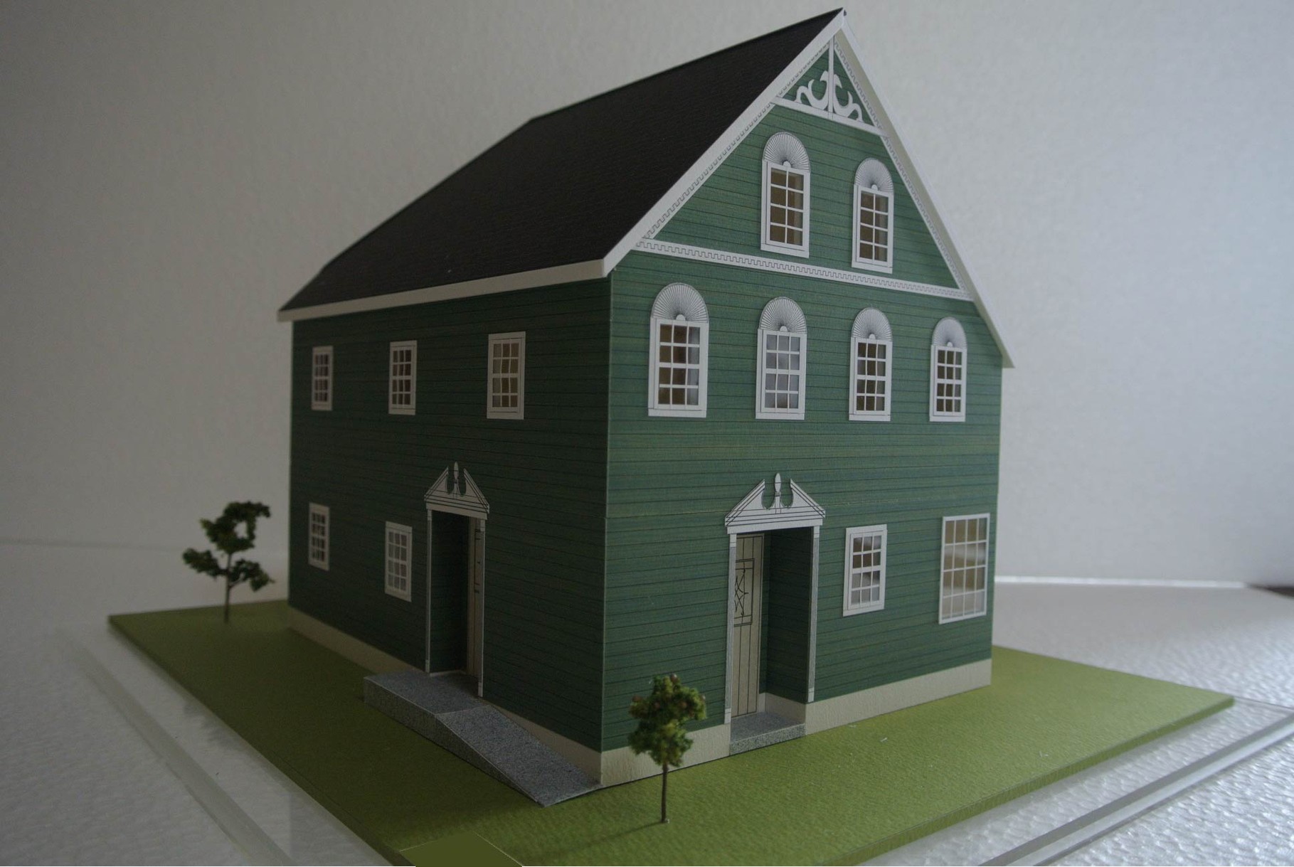 こんにちわ。 ブログ更新がすっかり久々になってしまいました。 先月末にスケール1/50の色付き内観模型を納品させて頂きました。 おしゃれな外観の輸入住宅の模型です。 外壁が緑色系のラップサイディングに対して、白いサッシにモール壁飾りなど、欧米のスタイルが素敵ですね。 小屋裏があって、屋根の一部を取り外しが出来るようにしてあります。...